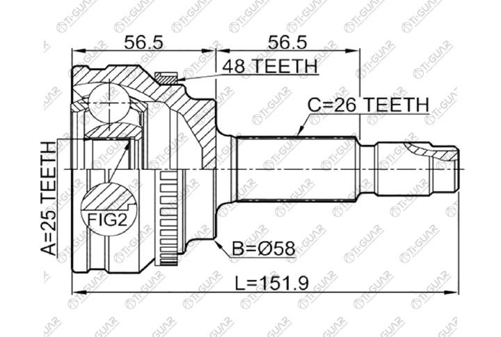 ШРУС наружный /внешний /TI-GUAR для Toyota Corolla Axio Fielder 2006-2012 ZRE142/ZRE144 2ZRFE/2ZRFAE; 25*58*26; TG-9594Z48; (CO3753A 0110-ZRE144A48 TO-094A48) 4341012790 4342012731 4341012810